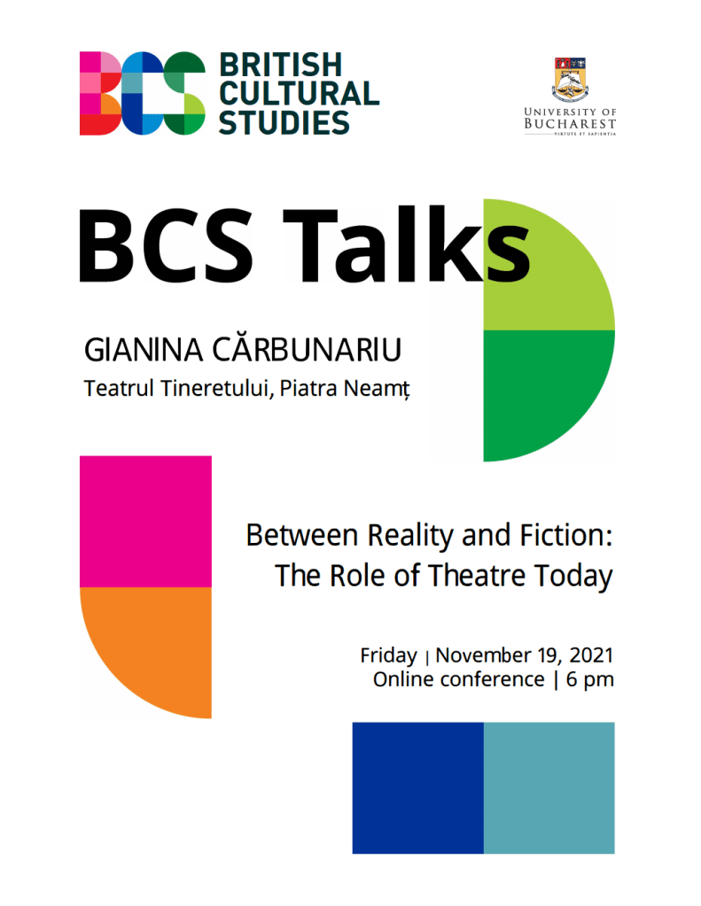 On 19 November 2021, Gianina Cărbunariu (Teatrul Tineretului, Piatra Neamț), will be delivering a talk on the theme: ‘Between Reality and Fiction: The Role of Theatre Today.’